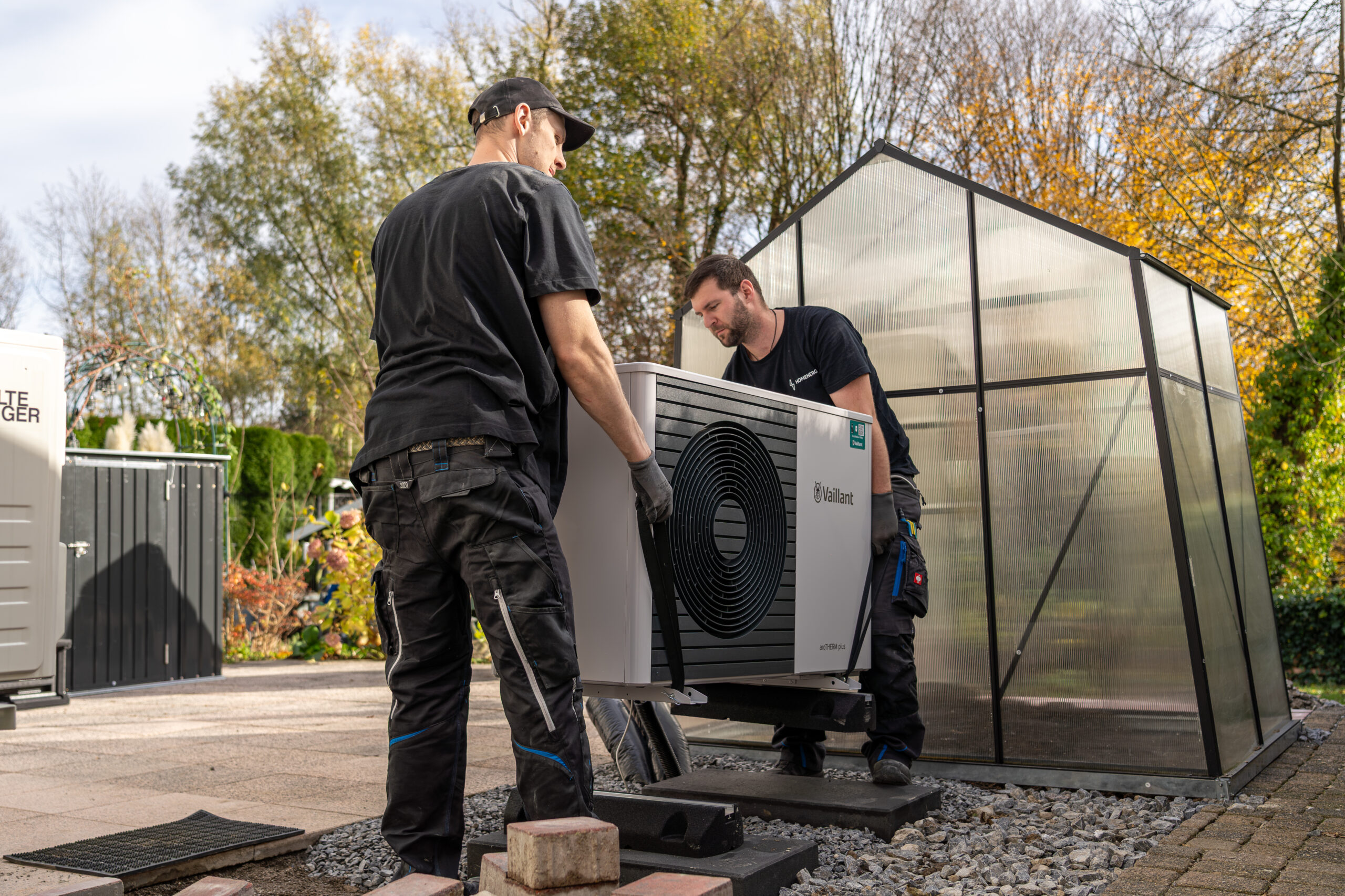 Wenn Aufnahme und Planung abgeschlossen sind, beginnt die eigentliche Montage. Dabei wird die Wärmepumpe als Gesamtsystem installiert und eingebunden.